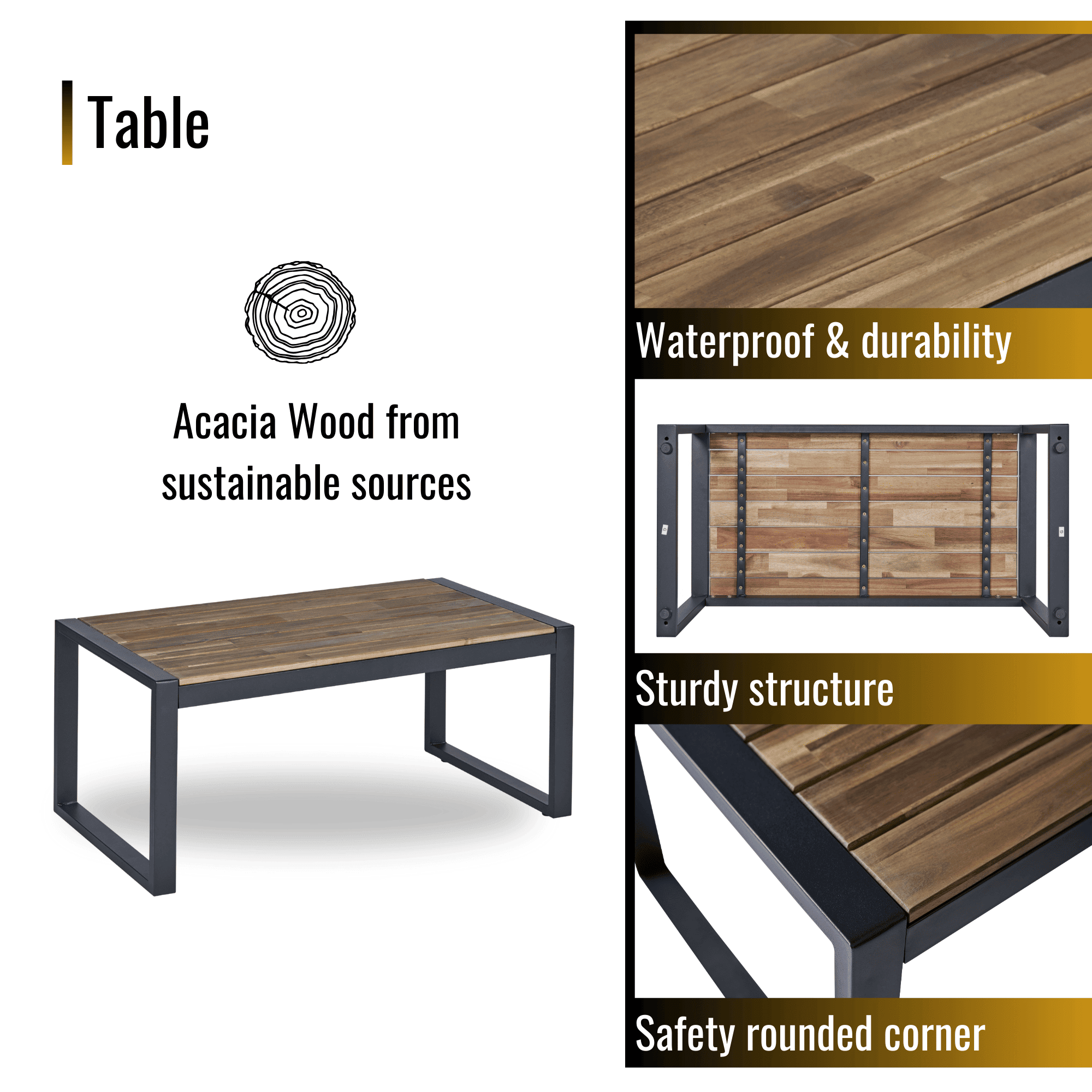 MODERN SET IN COZY HOME: Versatile and stylish outdoor patio furniture set, designed to elevate your outdoor living space with comfort and elegance. Crafted from high-quality PE rattan, powder coating frame with solid acacia wood, this set combines durability with a sleek aesthetic, perfect for any patio, balcony, porch, garden, backyard and lawn.